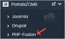4. On the left side, locate the Portal/CMS category. Click on it and then on the PHP-Fusion link that appears.