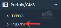 4. On the left side, locate the Portal/CMS category. Click on it and then on the PluXml link that appears.